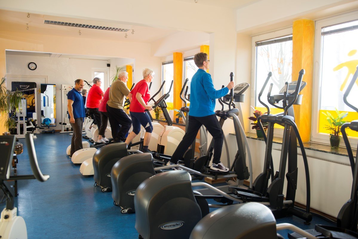 Der Fitnessbereich ist von Physiotherapeuten gestaltet und besonders auf Rückenprobleme spezialisiert. Aber natürlich kommen auch alle anderen nicht zu kurz, denn wir bieten Ihnen auch einen grossen Ausdauerbereich - und auch Freihanteltraining ist möglich.